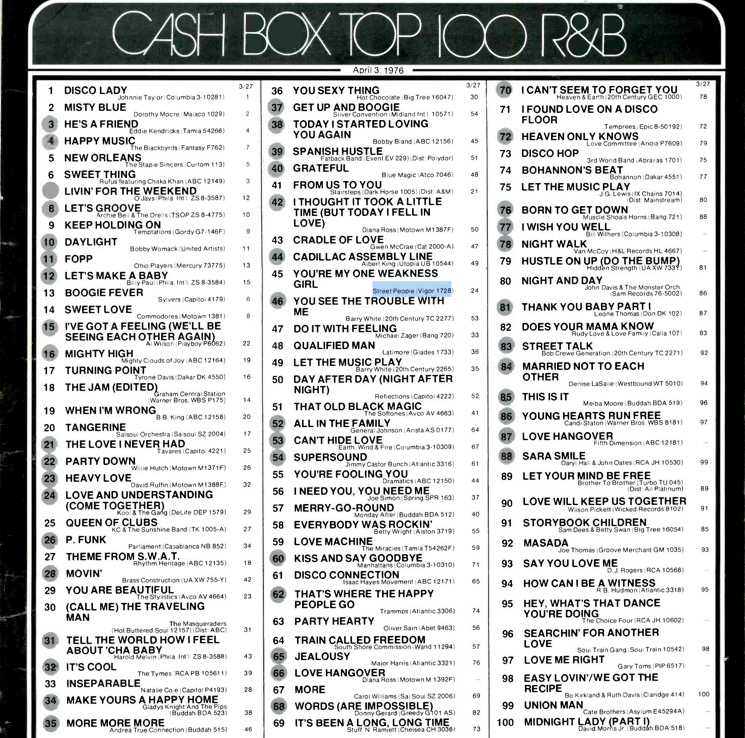 Cashbox R&B Top 100 – 3 april 1976
