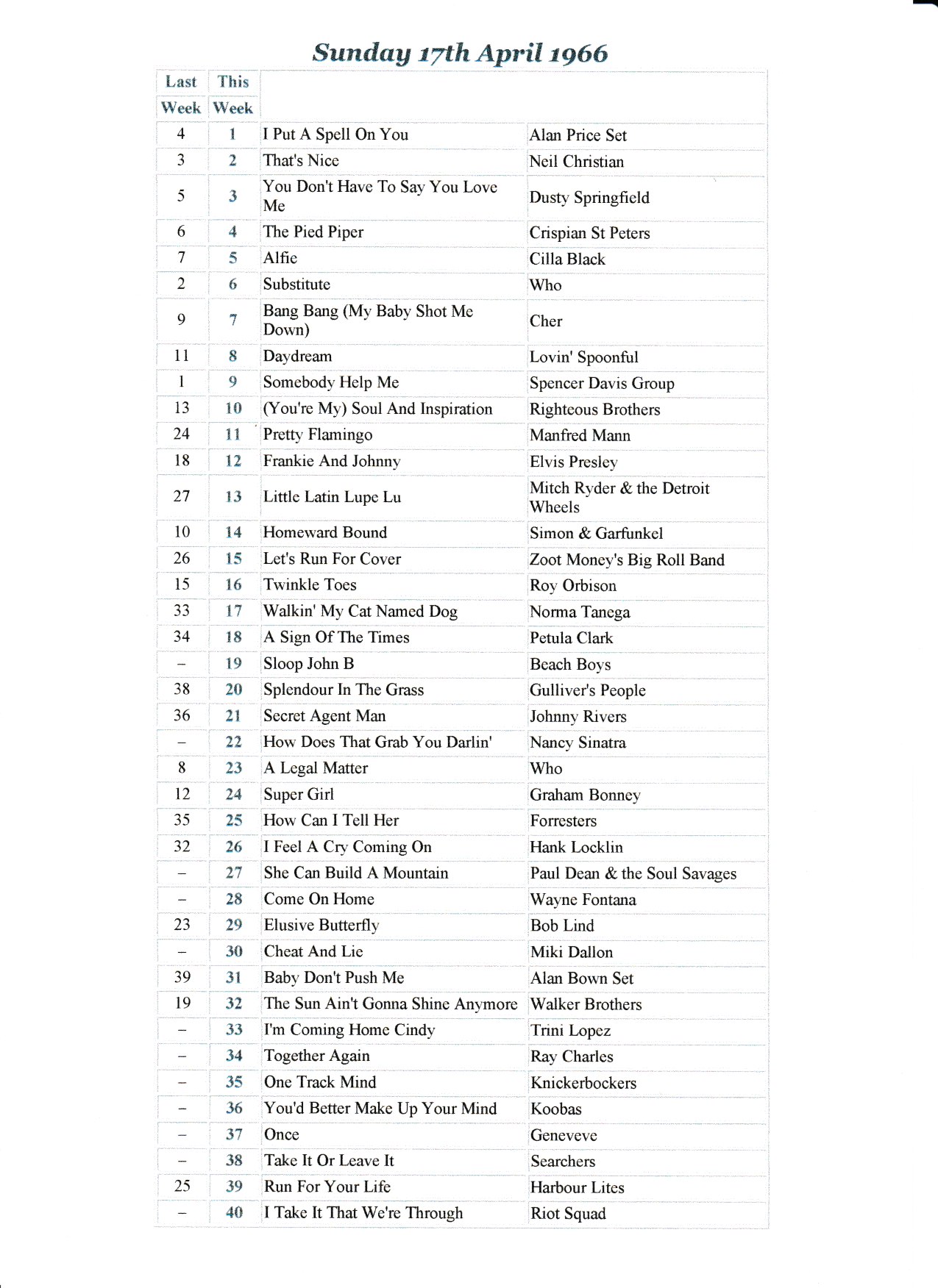 Je hoort zondagmiddag tussen 13 en 15 uur bij 192Radio de Radio London Fab40 van 17 april 1966