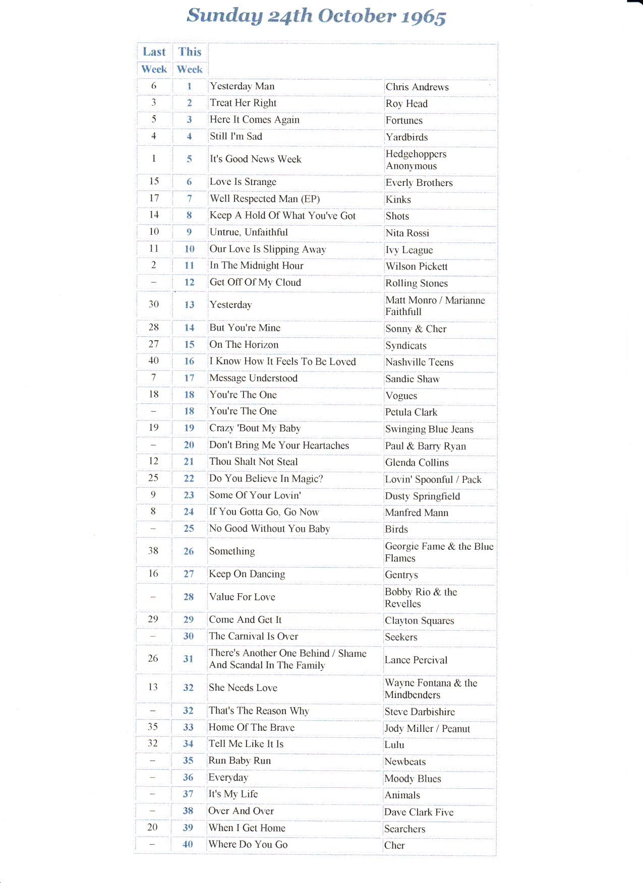 Op zondag tussen 13 en 15 uur via 192Radio hoor je weer de Radio London Fab40 van 24 oktober 1965