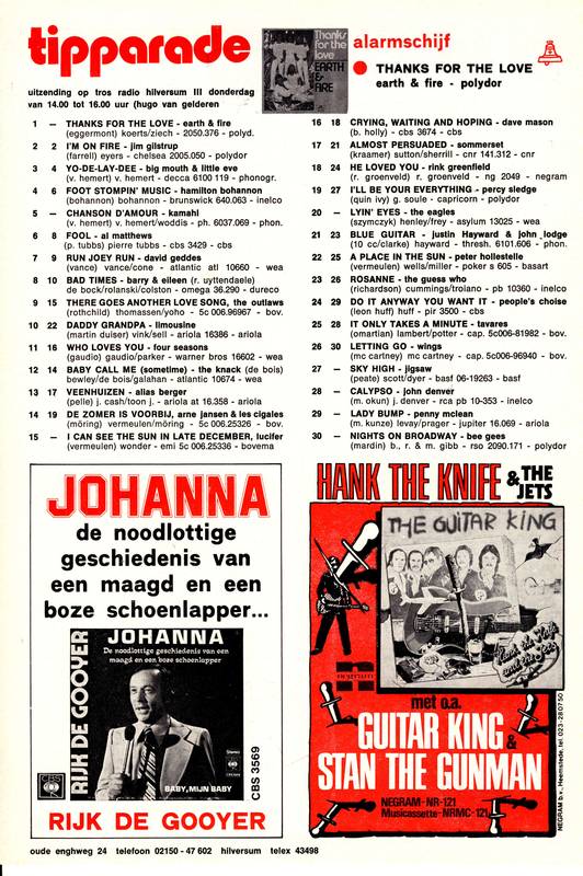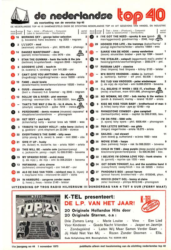 TOP 40 en TIPPARADE van zaterdag 01 november 1975 – uitzending zaterdag 01 november 2025 13-18 u + woensdag 05 november 2025 13-18 u (hh)