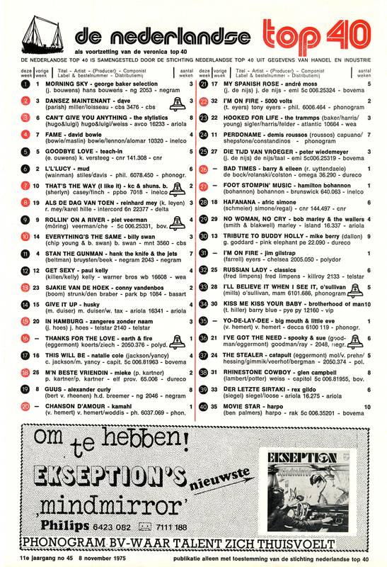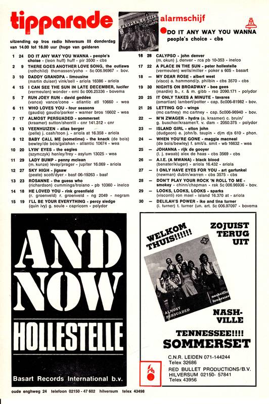 TOP 40 en TIPPARADE van zaterdag 08 november 1975 – uitzending zaterdag 08 november 2025 13-18 u + woensdag 12 november 2025 13-18 u (hh)