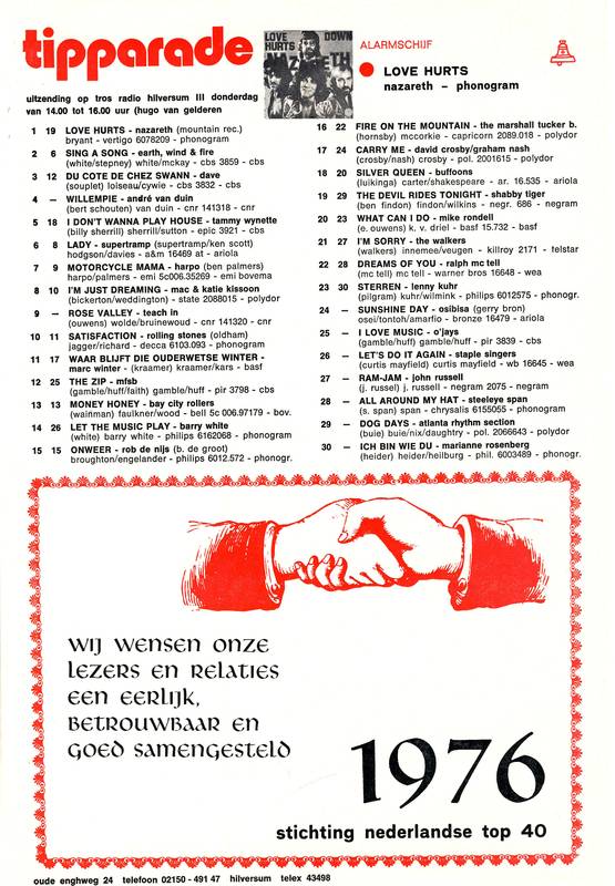 TOP 40 en TIPPARADE van zaterdag 10 januari 1976 – uitzending zaterdag 10 januari 2026 13-18 u + woensdag 14 januari 2026 13-18 u (hh)