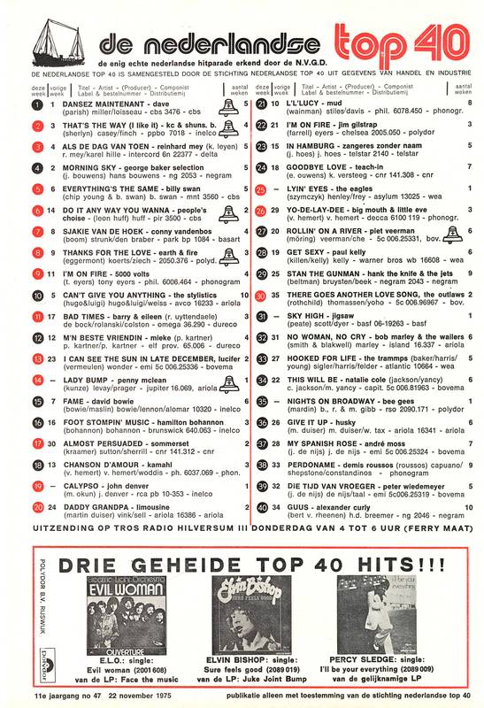 TOP 40 en TIPPARADE van zaterdag 22 november 1975 – uitzending zaterdag 22 november 2025 13-18 u + woensdag 26 november 2025 13-18 u (hh)