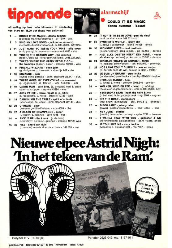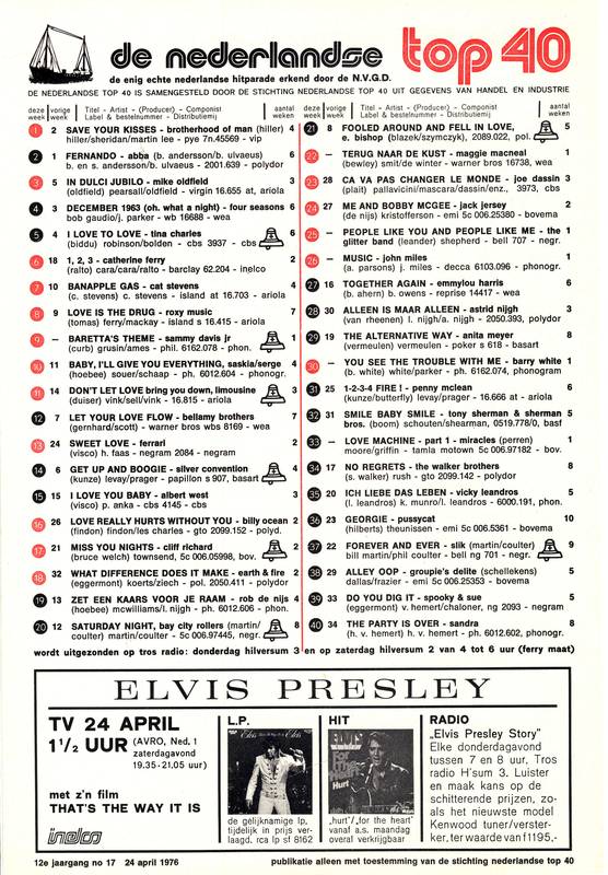 TOP 40 en TIPPARADE van zaterdag 24 april 1976 – uitzending zaterdag 25 april 2026 13-18 u + woensdag 29 april 2026 13-18 u (hh)