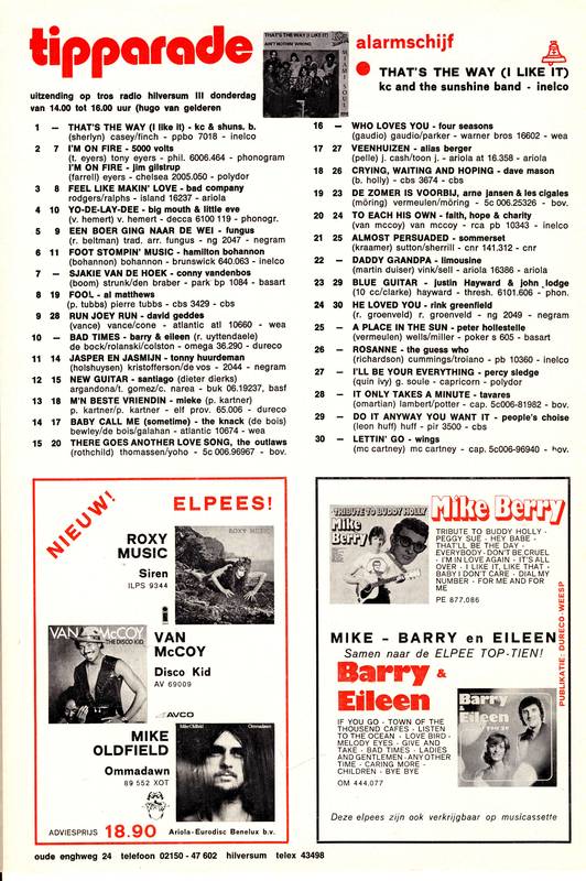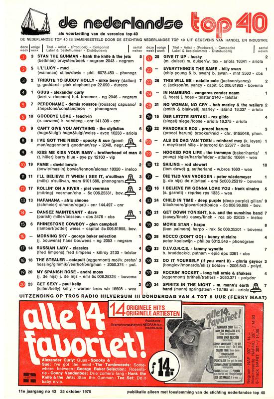 TOP 40 en TIPPARADE van zaterdag 25 oktober 1975 – uitzending zaterdag 25 oktober 2025 13-18 u + woensdag 29 oktober 2025 13-18 u (hh)