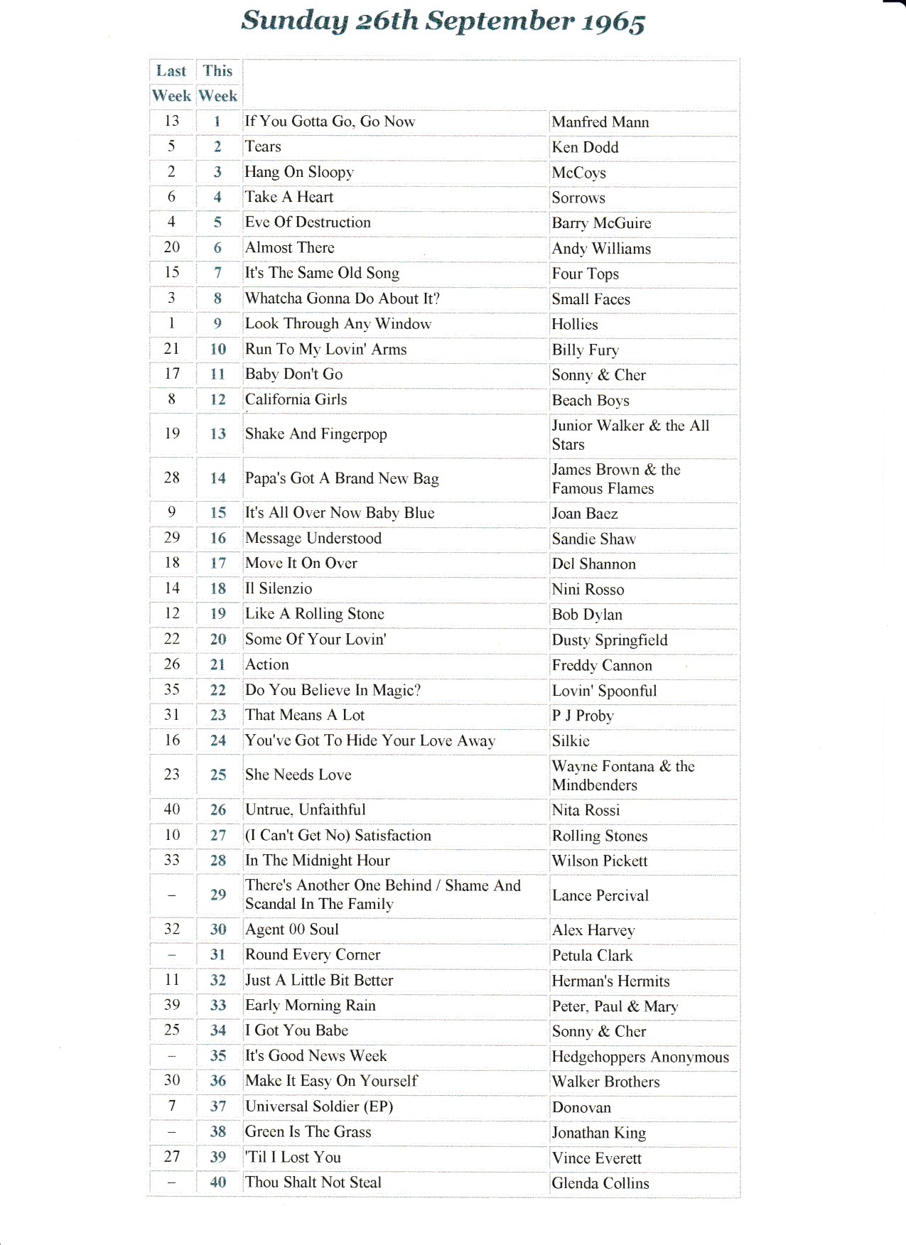 The Radio London Fab 40 – 26 sept 1965 – uitzending zo 28 sept 2025 13-15 – 1 oktober 2025 21-23 u (hh)